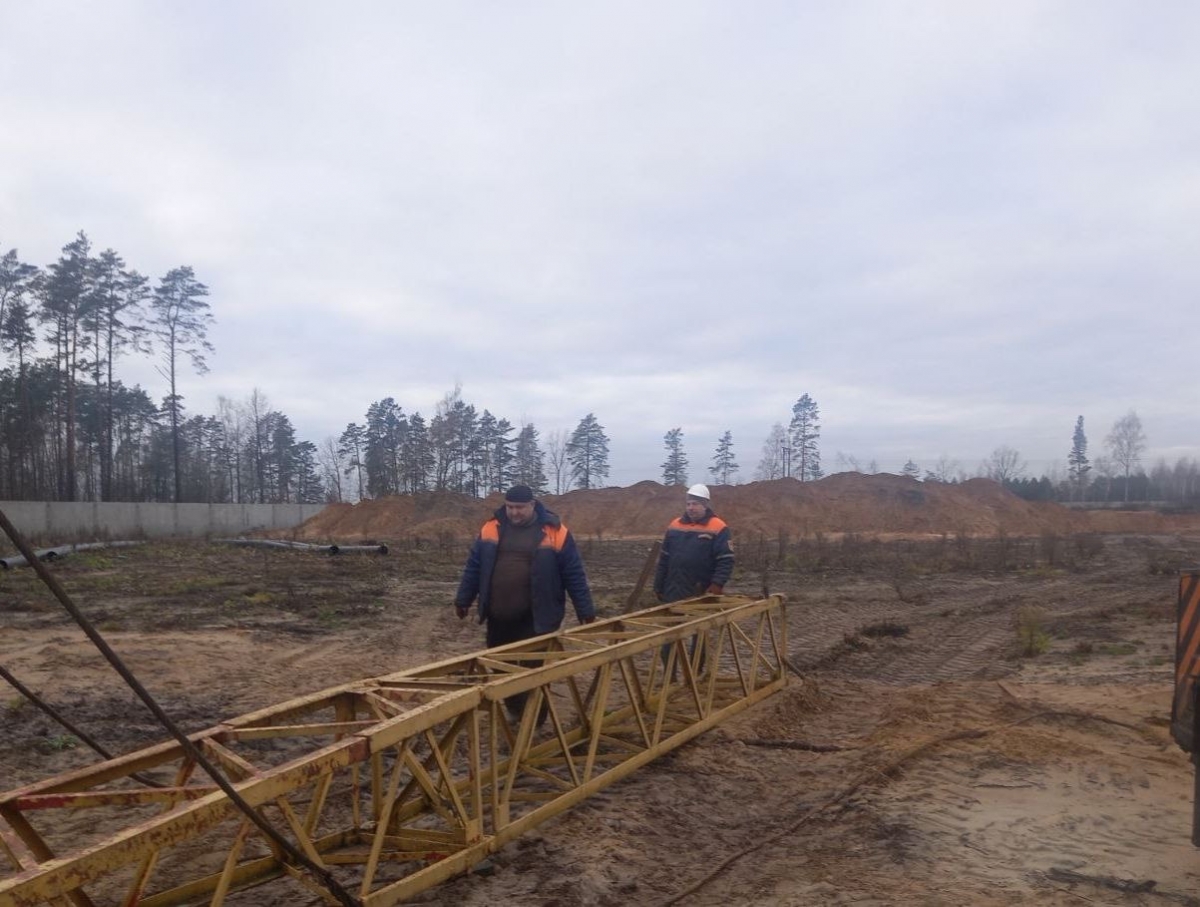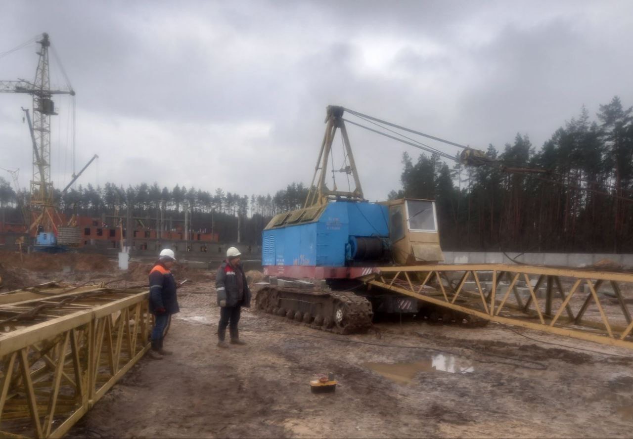 Внастоящее время монтажная бригада завершает работы по монтажу гусеничного крана в следующем составе: Аржанович Дмитрий, Сидорович Виталий, Кузьмицкий Сергей.