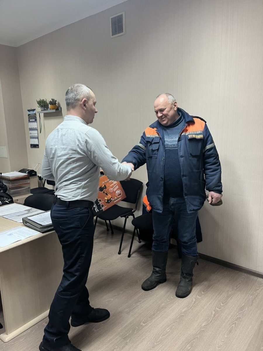 В торжественной обстановке Николая Владимировича поздравили его коллеги, а начальник филиала вручил ценный подарок. Дмитрий Викторович поблагодарил юбиляра за отличную работу на стройплощадках страны и вклад в воспитание молодой смены.